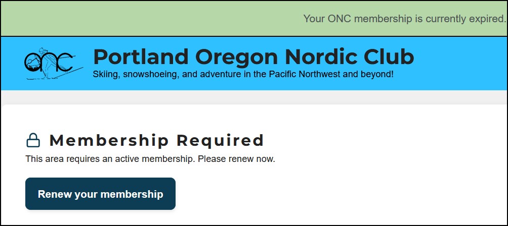 If you login and see this banner at the top of the page then your membership has expired. Just click on the link in it and you can renew.
