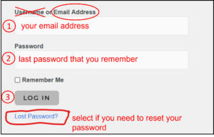 - If you don’t remember your password, or are a family member needing a login, click on ‘Log In‘ from the main menu and then select ‘Lost Password‘.